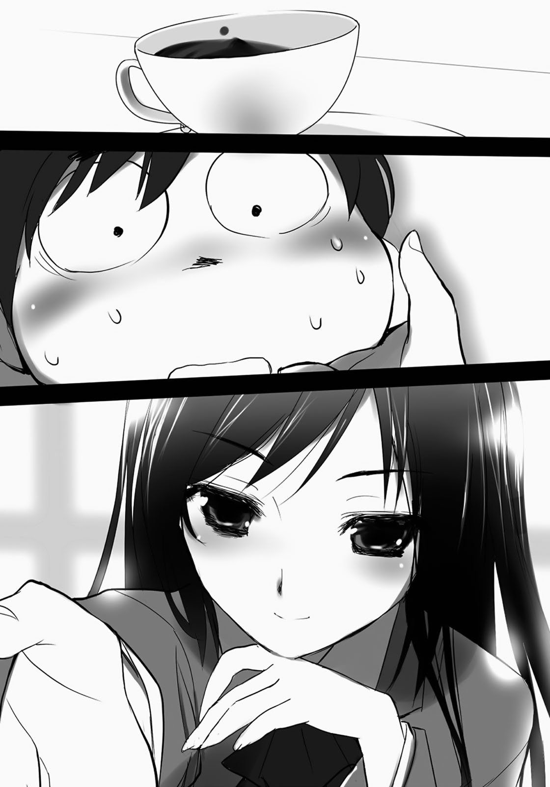 Глядя на потрясенное лицо Харуюки, Черноснежка наконец улыбнулась нормально, потом, опустив голову, взяла свой чай и поднесла к губам.