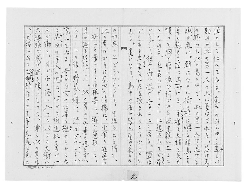 Разумеется, Накадзима Ацуси далеко не единственный японец, оставивший письменные свидетельства о своем пребывании в Микронезии 1930-х – начала 1940-х годов. Писались путевые очерки, повести, составлялись служебные отчеты. В этом смысле тексты Накадзимы не уникальны. Не уникальны его изначальные представления и предубеждения в отношении Южных морей и их обитателей, о чем он сам упоминал не единожды: грезы о потерянном рае, клише европейских колониальных романов; Герман Мелвилл, Пьер Лоти, Поль Гоген и, конечно, Роберт Льюис Стивенсон. В этом он тоже лишь один из многих. Тем не менее именно его лаконичные зарисовки без конца цитируются в исследованиях японского (и, шире, мирового) колониализма, постколониализма, японской культурной идентичности и так далее [5]За примерами можно обратиться к работам Роберта Томаса Тьерни, Накамуры Кадзуэ, Нисихары Дайскэ, Судо Наото, Клемена Сеницы и других исследователей.. И если выискивать в его текстах нечто уникальное (помимо, разумеется, неповторимого стиля изложения, умения передать главное двумя-тремя штрихами… помимо, собственно, таланта рассказчика), то, возможно, небесполезным будет присмотреться к специфическому сочетанию момента, взгляда и положения, в них отразившегося. Накадзиме Ацуси выпало отправиться на Южные острова всего за полгода до открытия Тихоокеанского театра военных действий Второй мировой войны. Сам он, разделяя многие типичные идеи и убеждения обитателей сердца империи, всё-таки обладал богатым опытом проживания за пределами Японского архипелага. Наконец, служебное положение не просто позволяло, а обязывало его погружаться в реалии местной жизни, которые открывались далеко не всякому приезжему японцу. Совмещая редакторскую работу с инспектированием отдаленных школ, он успел посмотреть на островной быт во всём его многообразии и вдоволь налюбовался на красоты тропических широт. Но вместе с тем увидел, как странно порой воплощаются в жизнь «бумажные» предписания, насколько далеки от реальности общепринятые представления об островитянах, их нуждах и счастье, которое им якобы помогала устроить Японская империя. В письмах, которые Накадзима отправлял из Микронезии домой, отразились его нерадостные раздумья и сомнения в целесообразности своей работы. В ноябре 1941 года он писал жене:
