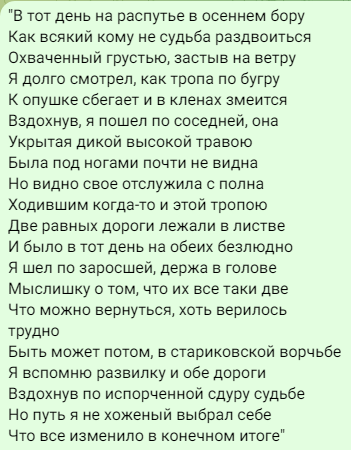 Рядом несколько строк мелким шрифтом: -Ты трезва, нежна и безупречно чиста; путь впереди труден, но ты остаёшься самым прекрасным пейзажем в моей жизни-.
