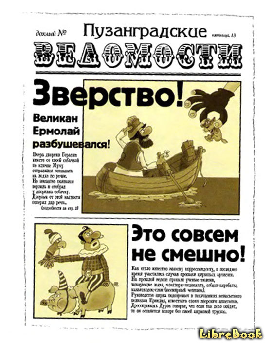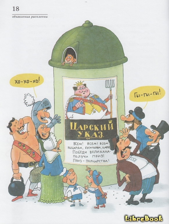 Но случилась в тех краях беда. Повадился в государство худющий и печальный великан Ермолай. Стал он крестьянских детей да скот поедать, нанося урон невосполнимый. Тогда царь, под собственным портретом, издал указ, доставить к нему смутьяна. Но увидев указ, подданные царя, в очередной раз, лишь расхохотались.