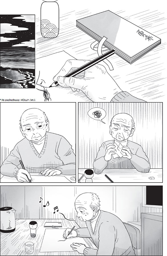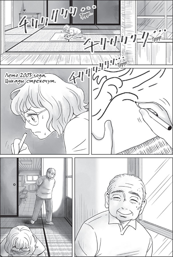 Стоит старику увидеть улыбку внучки, и воспоминания о вчерашнем ночном кошмаре тают как дым. Юки изо всех сил старается казаться серьезной, взрослой – это так важно подросткам, – но у нее не получается. И вот она уже не может совладать с улыбкой, а глаза начинают искриться, будто снег на зимнем солнце. Дедушка Дзиро ждет; наблюдает, как внучка, зарывшись пальцами в волосы (не совсем каштановые, но и не совсем вороные), пристально всматривается в разложенные перед ней рисунки.