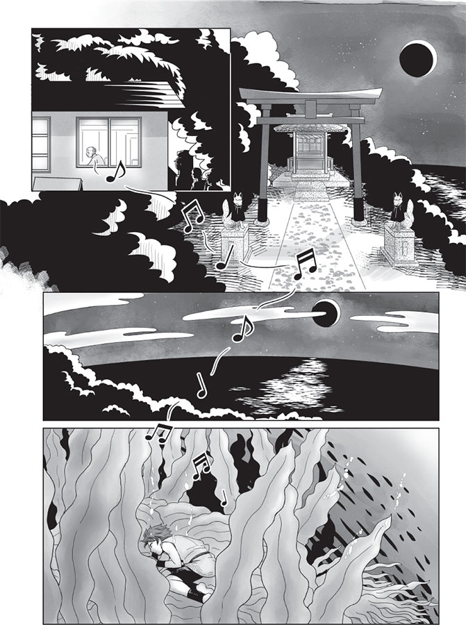 Давным-давно, мукаси-мукаси, под водой жил-был мальчик, который мог стоять на гребне волны, как серфер на доске, и любил петь, а голос его повелевал всеми морями Мирового океана. Дитя воды, он любил сушу и людей, что ее населяли; сердце мальчика было добрым, а глаза – зоркими. Он мог успокоить сомов, спасти моряков из беды и преодолеть любые напасти: и злых духов, и хитрых водяных-капп, и лис-кицунэ, и вулканы.