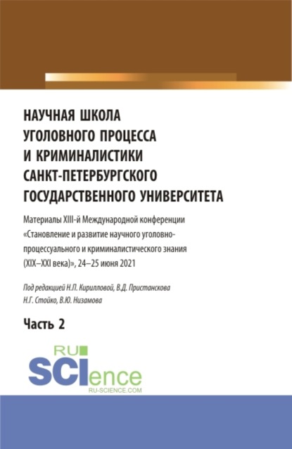 Научная школа уголовного процесса и криминалистики Санкт-Петербургского государственного университета. Материалы XIII-й международной конференции 2021 года. В двух частях. Часть 2. (Аспирантура, Бакалавриат, Магистратура). Сборник статей.