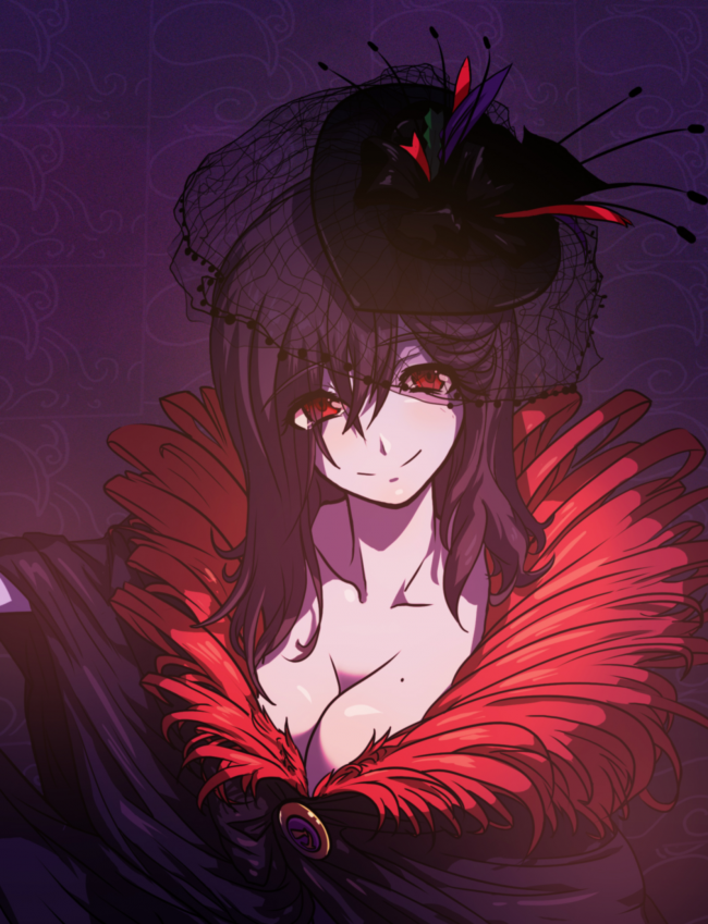Ее лицо украшали алые глаза и соблазнительно игривые губы, в которых нельзя было признать ее смертную природу. Несмотря на коротко подстриженные волосы, ниспадающие ниже плеч, благодаря стройным линиям тела она производила впечатление чарующего цветка.
