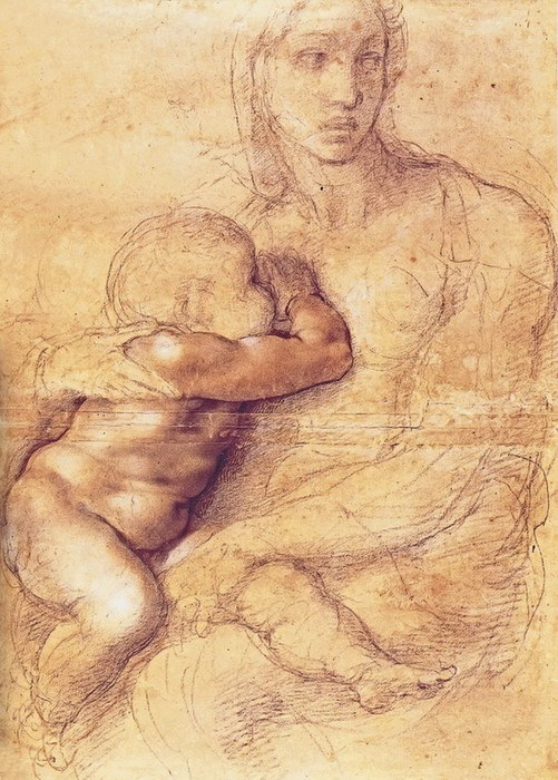 Микеланджело Буонарроти. Набросок «Мадонны с Младенцем». Между 1520 и 1525 гг. Дом Буонарроти. Флоренция.