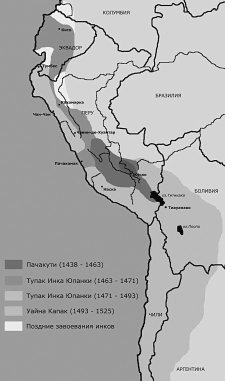 Итак, инки. Слово это употребляется в разных значениях. Для большинства читателей, лишь понаслышке знающих о культурах аборигенов Америки, инки есть чаще всего то же самое, что и древние перуанцы. Специалисты порой имеют в виду под инками всю совокупность подданных инкского государства, но инками неверно называть создателей более древних индейских культур. Еще недавно считалось, что в отличие от майя и даже ацтеков инки вышли на арену истории очень поздно, всего лишь за сто лет до появления испанцев. Сейчас эта точка зрения пересмотрена: в XIII в. н.э. инкское государство уже сформировалось. Тем не менее границы инкской империи установились как раз накануне первого путешествия Колумба, а ее социально-экономическая структура окончательно выкристаллизовалась уже в те годы, когда конкистадоры уничтожали гаитянских араваков и покоряли Мексику.