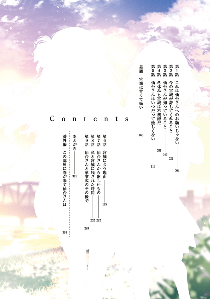 Весной этим отношениям придёт конец. Но сейчас нам пока ещё легко встретиться, да и повод можно найти — даже на зимних каникулах. В том, что мне хочется видеть Сэндай-сан, в том, что мне хочется к ней прикасаться — во всём виновата она, ведь это она первой нарушила правила. Поэтому мне нужно, чтобы она взяла за это ответственность… но Сэндай-сан до сих пор молчит.