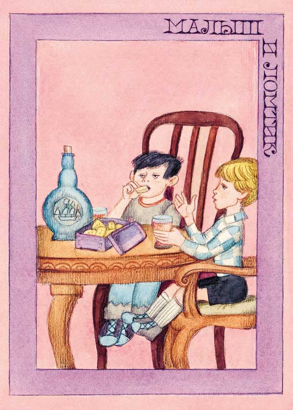 Прежде чем окунуть сухарь в напиток, Малыш тщательно оглядел его со всех сторон и слегка пососал. Ведь это был не какой-нибудь обыкновенный сухаришко, какие продаются в булочной. Этот суровый твёрдый сухарь, может быть, проплыл вокруг света. Такие сухари после кораблекрушения пересчитывали и делили поровну оставшиеся в живых матросы в спасательной шлюпке посреди необозримого океана!