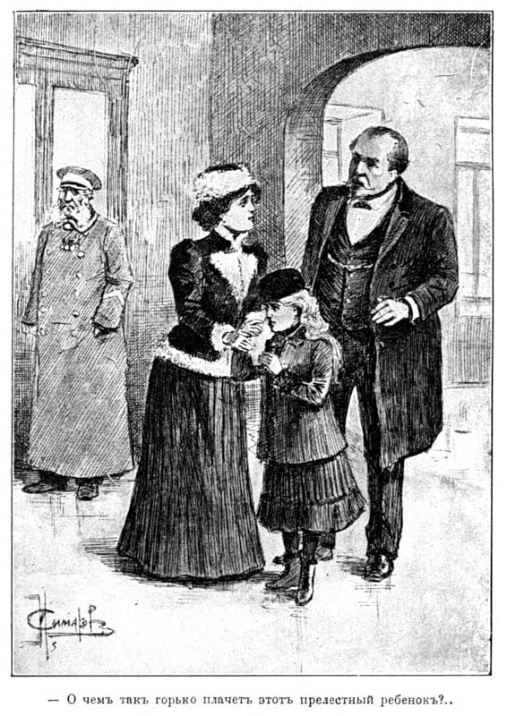 — Как! — воскликнул незнакомец, узнав причину Лизиных слез, — наш строгий швейцар не хотел пускать эту милую девочку к её маме? В таком случае, малютка, утри твои слезки и пойдем со мною. Я отведу тебя к ней… Надеюсь, Осип, — обратился он к швейцару с добродушной улыбкой на лице, — меня-то ты туда пропустишь, любезный?