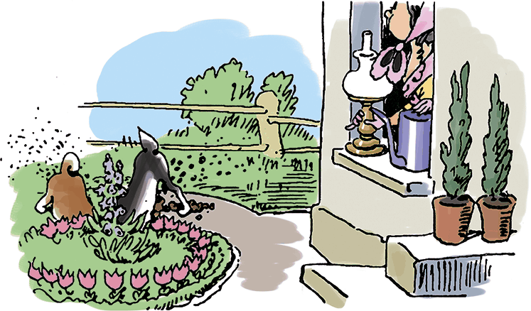 Больте выбежала в сад: