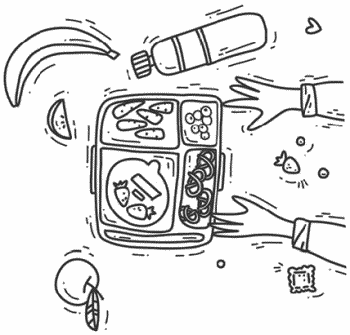 Она помещает в контейнер яичный рулет и блинчик с кунжутными листьями, фруктовый салат, приправленные специями листья капусты и две толстые говяжьи котлетки. Затем привычным движением вынимает из ящика длинный лист бумаги и черными чернилами выводит на нем: