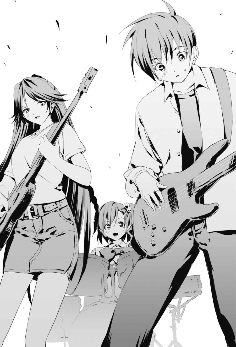 Я не знаю, входила ли она всё больше во вкус, но она начала медленней отбивать восьмые доли. Было ощущение, что моя голова — тарелка, правая рука — напольный том-том. Прекрати, стой — Чиаки-сан, мне очень больно! Вскоре произведение дошло до припева. Она начала несильно выстукивать шестнадцатые ноты на моем левом плече, которое заменяло малый барабан.