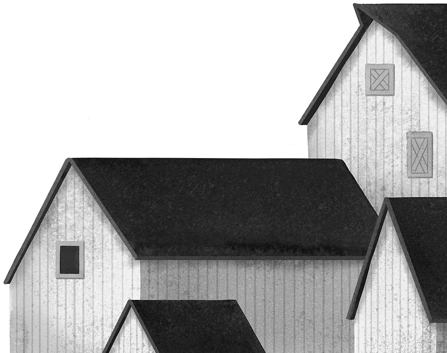 У Рамблера был руль, но мистер Шариф сел на заднее сиденье и приказал фургону трогаться. Они обогнули дом, выехали со двора, миновали ряды кустов и деревьев и вдруг оказались посреди бесчисленных строений. Все постройки были разной длины и высоты, с белыми стенами и серыми крышами. Они до того тесно лепились друг к другу, что трудно было сказать, где кончается одна и начинается другая. Некоторые были забрызганы грязью. У других в стенах зияли дыры, кое-где торчали отстающие доски. Везде пахло травой и навозом.