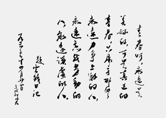 Когда мы учились в университете, Мао Цзэдун[13]Мао Цзэдун (1893–1976) – основатель КНР, революционер, партийный и государственный деятель. – Примеч. ред. призвал всех подражать примеру Лэй Фэна[14]Лэй Фэн (1940–1962) – сирота, воспитанный Народно-освободительной армией Китая, посмертно прославлен как образец безупречного альтруизма и верности коммунистическим идеям. – Примеч. ред.. Мы, будучи студентами, с радостью откликнулись на этот призыв. Наша группа даже поставила поучительную пьесу о Лэй Фэне на русском языке. Пару лет назад один мой однокурсник прислал мне отрывок из дневника Лэй Фэна, который я переписал для него в 1964 году, и теперь я бережно храню его. Вот что там было написано: «Ах, молодость… Ты вечная радость! Но истинная молодость принадлежит тем, кто вечно стремится вперед и вверх, кто забывает себя в вечном труде, кто вечно помнит о скромности».