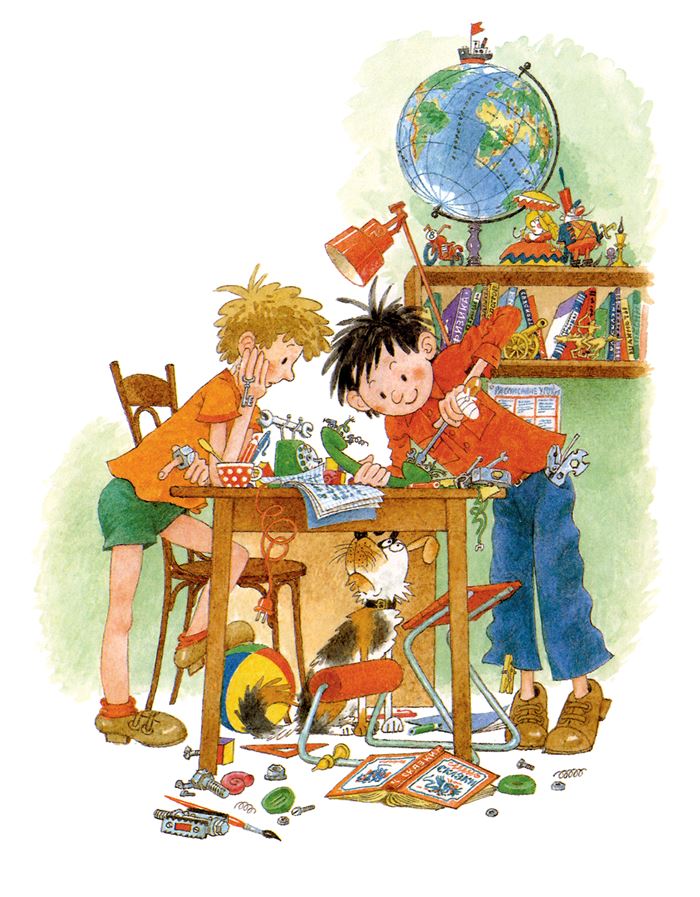 – Ах я разиня! – говорит Мишка. – Забыл! Её надо было там внутри привинтить. Придётся снова разбирать трубку.