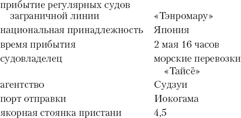 Тору Ясунага отодвинулся от бинокулярной трубы с тридцатикратным увеличением. Никакого намека на грузовое судно «Тэнромару», которое должно прибыть в четыре часа. Тору вернулся к столу, еще раз просмотрел сведения о торговых судах порта Симидзу, данные на сегодняшний день: