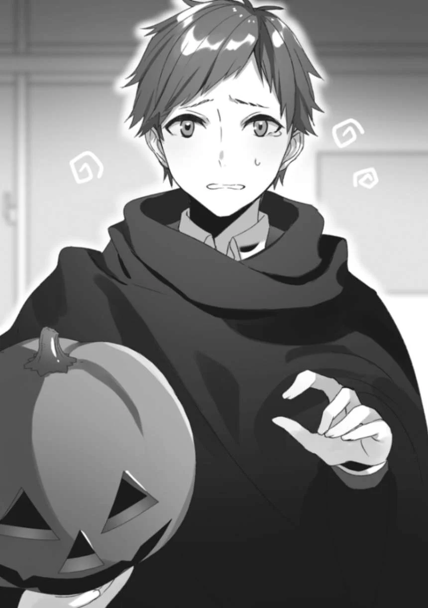 Рефлекторно пробормотал я себе под нос, столкнувшись со странным существом. Это был монстр, с обернутой вокруг его тела тканью, напоминающей занавес, и огромной тыквой на голове. Так называемый “Джек-Фонарь”* сидел на корточках в углу коридора.