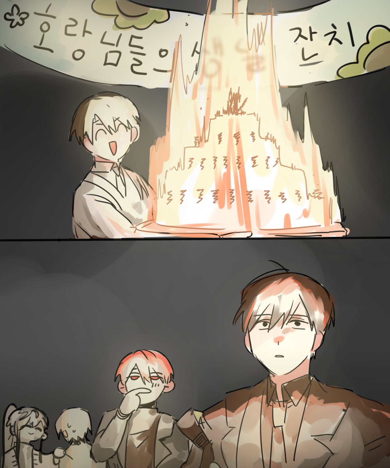Пока Ким Шин Рок скрывал своё гневное выражение и сверлил взглядом, прищуренные глаза Ён Дже Гёна скривились, и он улыбнулся.
