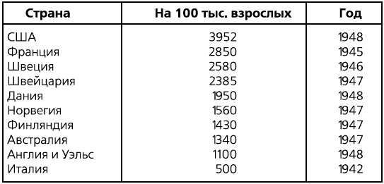 Приведенные ниже таблицы показывают количество убийств и самоубийств, а также число людей, страдающих алкоголизмом, в ряде наиболее важных стран Европы и Северной Америки. В табл. I, II и III приведены данные за 1946 г.